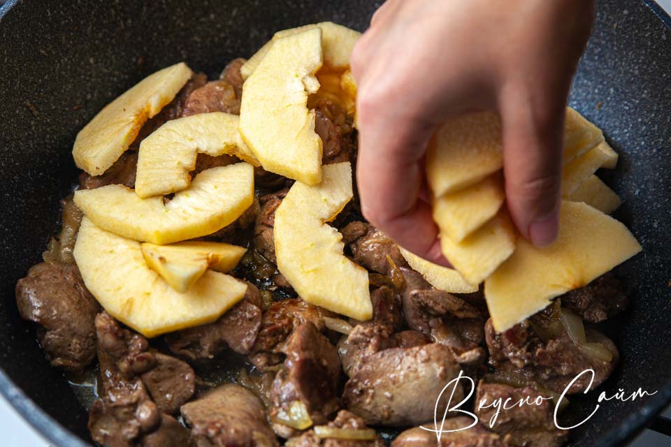 Рецепт куриной печени с яблоками